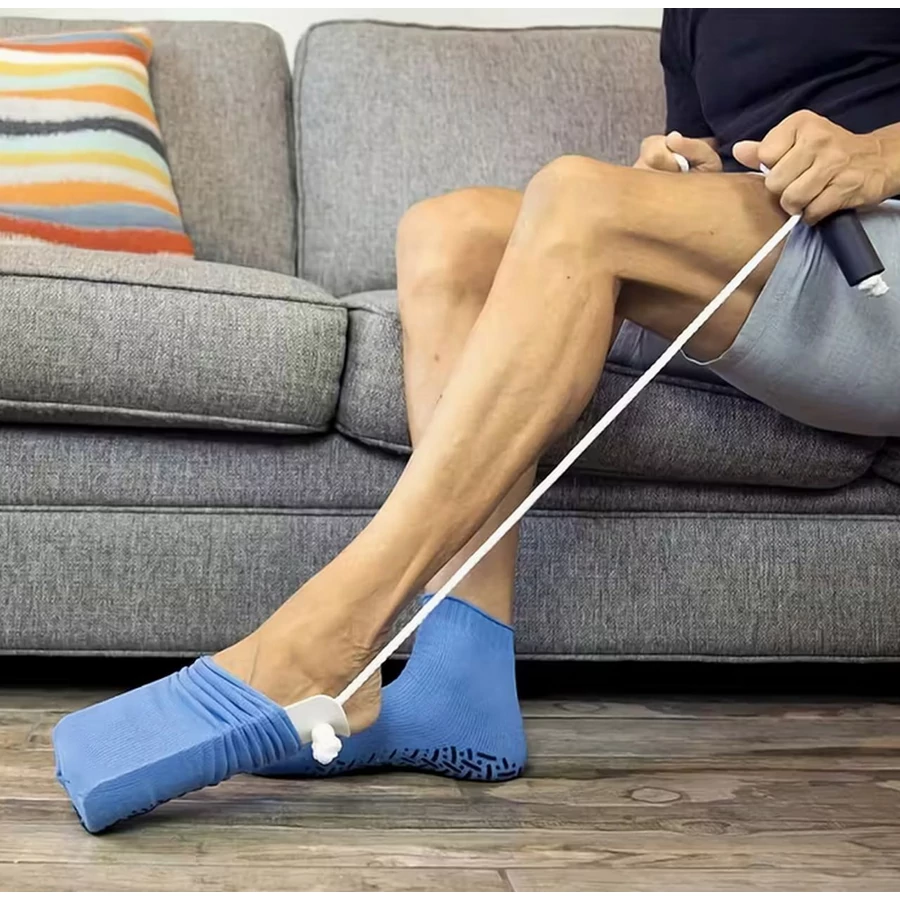 A zoknisegítő felhúzó eszköz megkönnyíti az idősek, az ízületi gyulladásban szenvedő betegek zokni felvételét. Az ízületi gyulladásban szenvedő betegek egyettértenek abban, hogy nehéz és fájdalmas a zokni felvétele, mert a fájdalmas ízületek megakadályozzák a lehajolást vagy a láb emelést, hogy elérjék a lábfejet. Ezzel a rugalmas zoknisegítő felhúzó eszközzel kényelmes ülőhelyzetben is felvehető a zokni és megkönnyíti a mindennapokat az idősek és az ízületi gyulladásban szenvedő betegek számára.